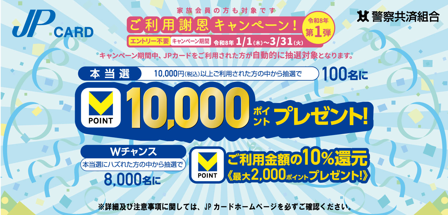 キャンペーン期間中、JPカードで10,000円(税込)以上ご利用された方が抽選対象になります。