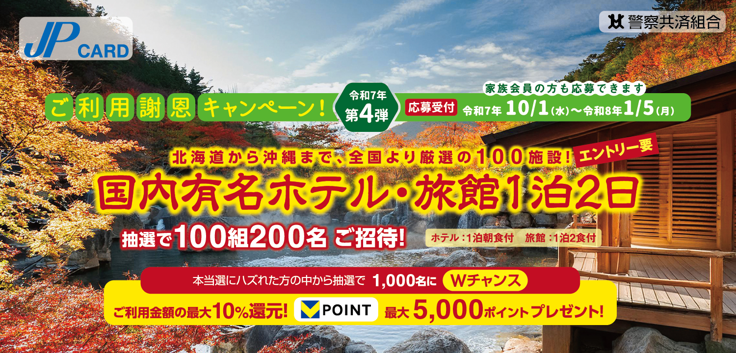 - 贈呈時にJPカードを退会或いは会員資格が停止された方は、当選の対象となりません。